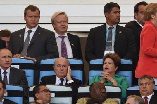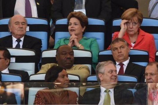 En la parte superior, Joseph Blatter, Dilma y Angela Merkel