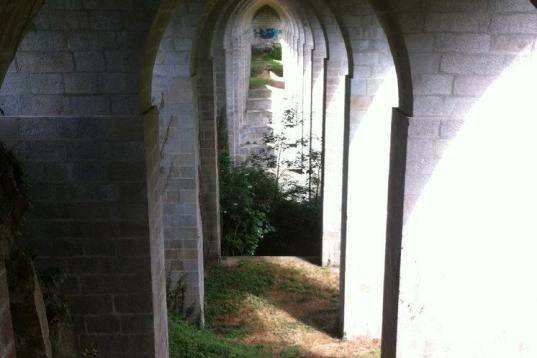 El viaducto de Clisson se levantó en 1841 para facilitar el paso de los turistas llegados al pueblo tras la renovación que llevó a cabo Lemot. Por debajo parece una catedral gótica.