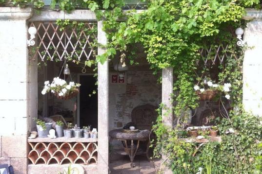 El Château tiene cuatro habitaciones rústicas para huéspedes con bañeras antiguas y duchas de pizarra. Este es uno de los rincones donde disfrutar el desayuno.