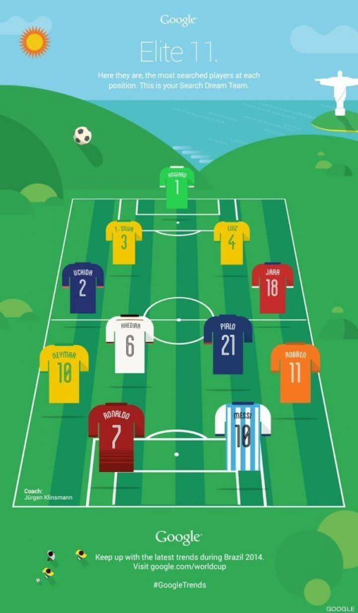 Por búsquedas en Google, este es el 'once ideal' del Mundial 2014 que, tal vez, coincida con tu preferido: