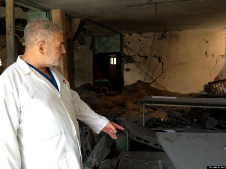 El doctor Nasser al-Tatar, el jefe del hospital de Al-Shifa de Gaza, señala el primer piso de su casa, donde estaba su clínica cardiovascular antes de que un misil israelí la destruyera el domingo. Su sobrino, que no vive en su casa, dijo que recibió una llamada de advertencia de los militares israelíes que le decía que la familia de al-Tatar tenía 10 minutos para evacuar la casa. Nadie resultó herido. Al-Tatar, que cuenta que perdió todo, insiste en que no tiene vínculos con Hamás. "Esto es Gaza", dice de pie, al lado de su casa destruida. "Esta es nuestra vida. Construí esta casa hace 20 años, y la han destruido en 10 segundos".