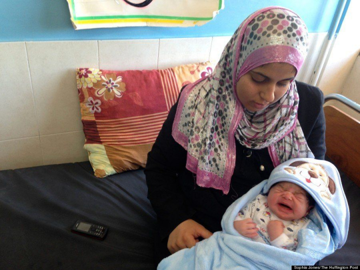 Asma mece a su bebé, Mohsen, en el hospital Al-Shifa en la ciudad de Gaza este viernes. Huyó de los ataques aéreos en su barrio cuando estaba embarazada, y tuvo un parto prematuro. "Yo estaba muy preocupada porque iba a perderlo", dice Asma en su habitación del hospital, que está ocupada también por otras dos madres. "Parecía que nuestros oídos iban a estallar con el sonido de las explosiones".