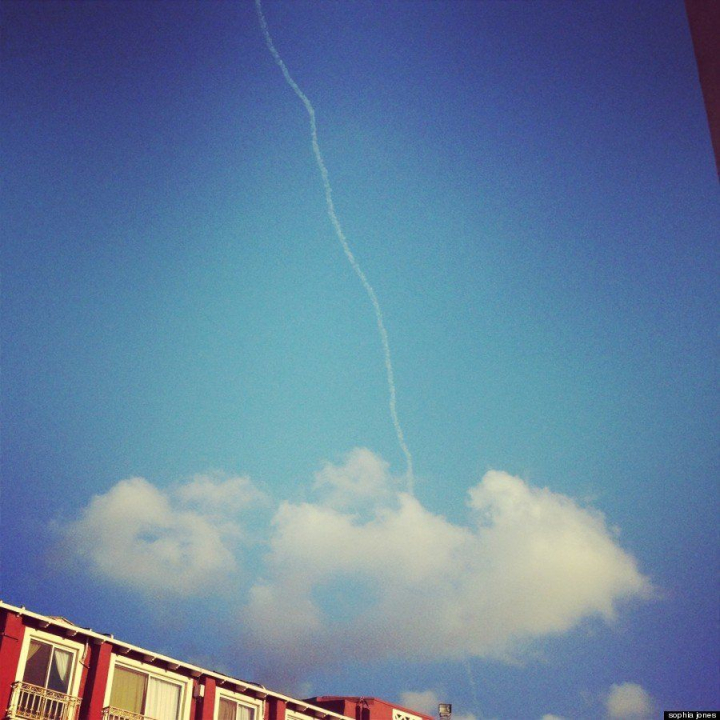 Hamás lanza un cohete contra Israel desde una zona de Gaza este lunes, dejando una marca blanca en el cielo.