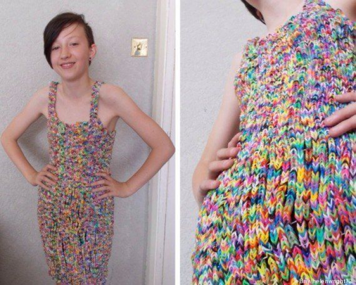 La autora de la prenda es una madre galesa, llamada Helen Wright, a quien se le ocurrió la idea mientras ayudaba a su hija Sian, de 12 años, a elaborar las tan populares pulseras de goma. Las mismas que lleva la Duquesa de Cambridge, Kate Middleton.