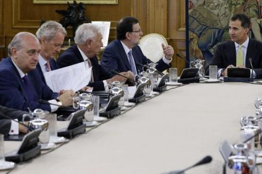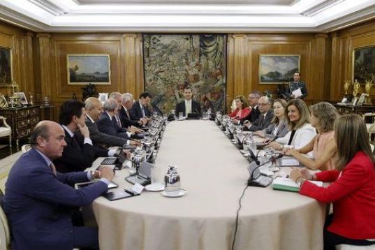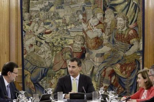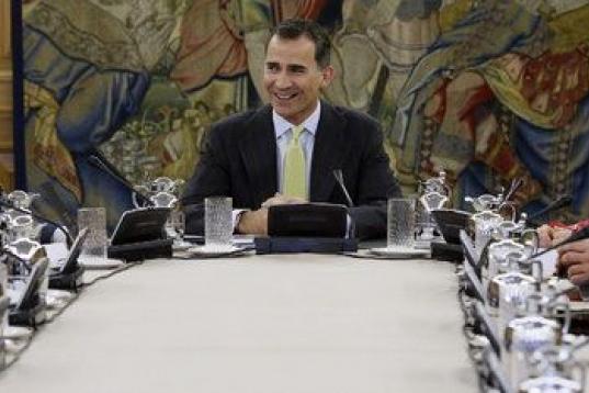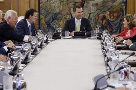 Felipe VI ha expresado en la reunión con Mariano Rajoy y sus ministros "la honra" que supone presidir su primer Consejo en el ejercicio de las funciones que la Constitución le encomienda. El rey ha animado al Gobierno a trabajar con ahínco, pensando siempre en el bien común y en el interés general de España y los ciudadanos.