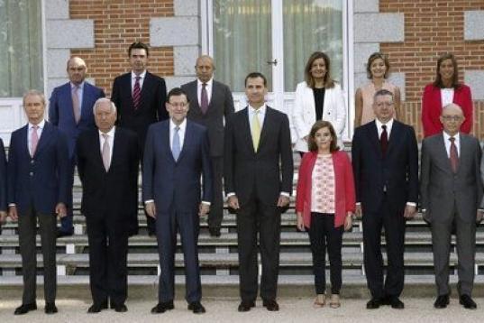 Antes de comenzar la reunión, el Monarca ha saludado al presidente del Gobierno, Mariano Rajoy, a la vicepresidenta, Soraya Sáenz de Santamaría y a todos los ministros, con quienes ha posado en la que supone su primera foto de conjunto con todo el Ejecutivo.