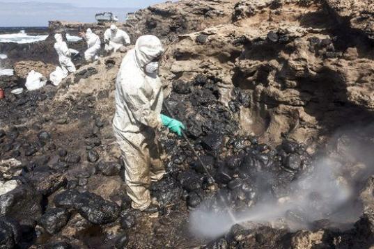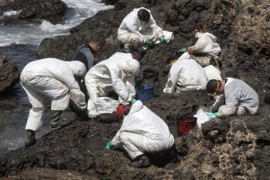 El Ayuntamiento de Agüimes (Gran Canaria) ha recogido hasta ahora quince toneladas de chapapote en la zona manchada por un vertido que se extiende por unos 800 metros de costa, pero solo en superficie, ya que los buzos han comprobado que los fondos marinos no están afectados.