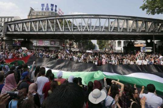 Durante la marcha se han coreado consignas como "Todos somos palestinos", "No al bloqueo de Gaza" o "Israel asesino, Hollande cómplice" en referencia al presidente francés, François Hollande.