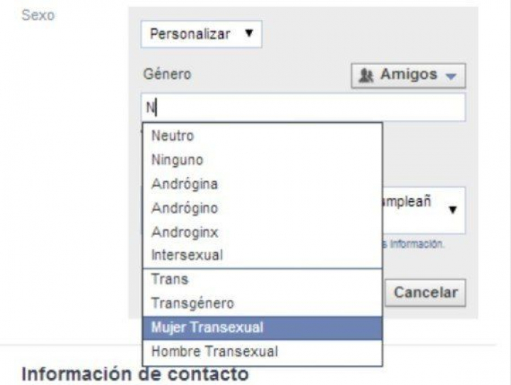 Facebook permite nuevas opciones de género: transexual, neutro, andrógino...