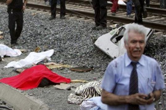 Antonio Martín Marugán, interventor del tren, camina entre las vías llenas de cadáveres