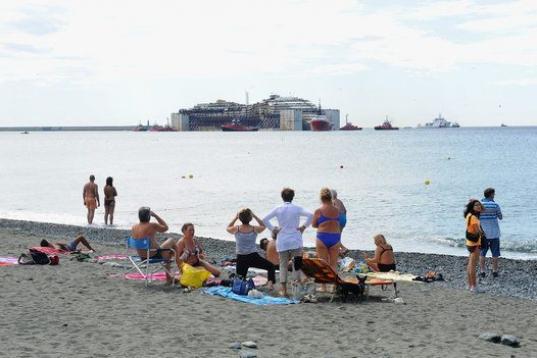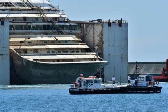 Los restos del transatlántico habían permanecido frente a Giglio desde el naufragio mientras los ingenieros organizaban una de las mayores operaciones de salvamento marítimo de la historia, que comenzó en septiembre de 2013. Los equipos desplazados al lugar del hundimiento lograron levantar el buque, de 114.500 toneladas, después de bombear aire en una treintena de cajas adheridas al casco.