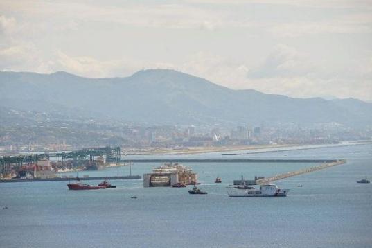 La nave ha llegado el domingo por la mañana al puerto de Génova, donde fue botado el 2 de septiembre de 2005. Esta vez su travesía ha sido muy distinta: muy deteriorado, ha avanzado remolcado por varias embarcaciones a baja velocidad por los fuertes vientos que se registraban.