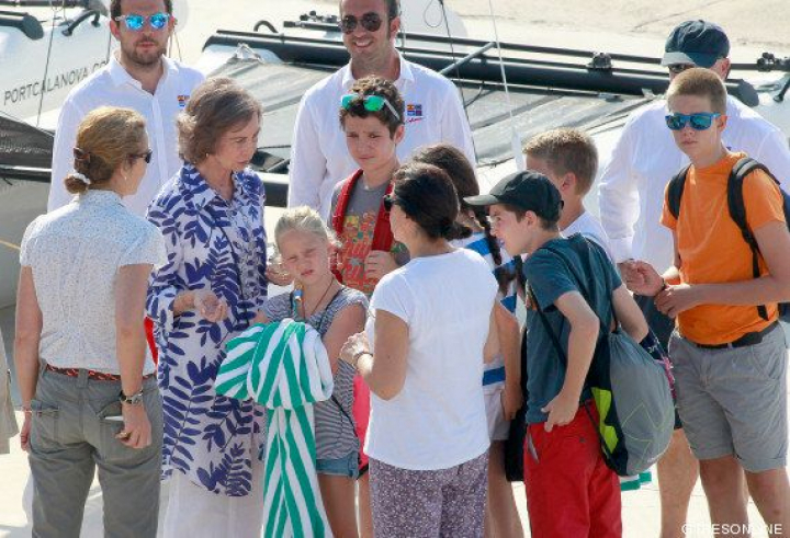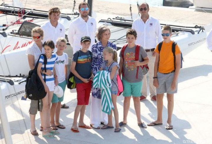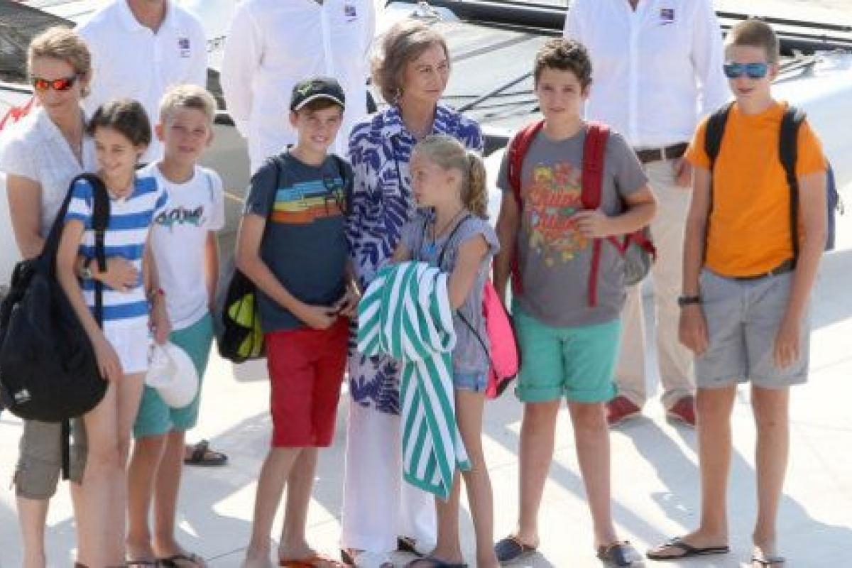 En el Club Naútico de Calanova han posado la reina Sofía y su hija mayor, la infanta Elena. Junto a ellos, los hijos de Elena, Felipe Juan Froilán y Victoria Federica, y también los cuatro de la infanta Cristina e Iñaki Urdangarin, de los que no hay ni rastro en Mallorca: Juan Valentín, Pablo Nicolás, Miguel e Irene.