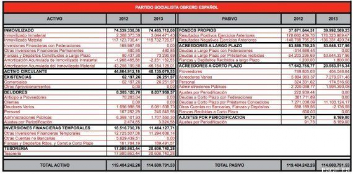 Los datos publicados corresponden a los ejercicios 2012 y 2013 e incluyen el balance de situación consolidado, y la cuenta de pérdidas y ganancias, también consolidadas, de cada uno de los ejercicios, ha informado el PSOE en un comunicado.