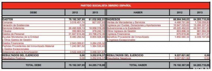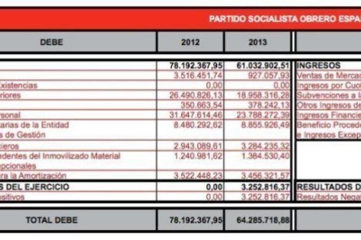 Según los datos facilitados por el partido, los ejercicios de 2011 y de 2012 fueron deficitarios, mientras que en 2013, el PSOE logra un superávit de 3,2 millones de euros.