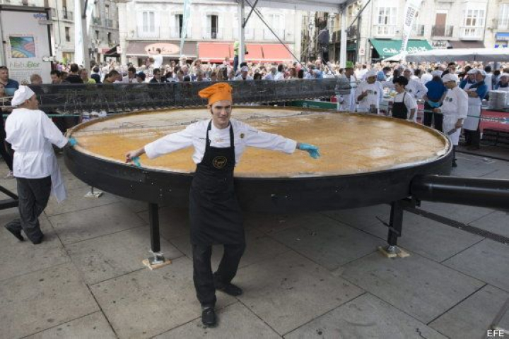 Tras dos días de preparativos previos y más de cuatro horas de elaboración en directo, un notario ha certificado que la obra culinaria dirigida por el chef Senén González, premio a la Mejor Tortilla de Patata (2010), ha cuajado. La cocción homogénea de esta receta ha sido posible gracias a una gran sartén, que el propio Senén, ha calificado de "obra de ingeniería".