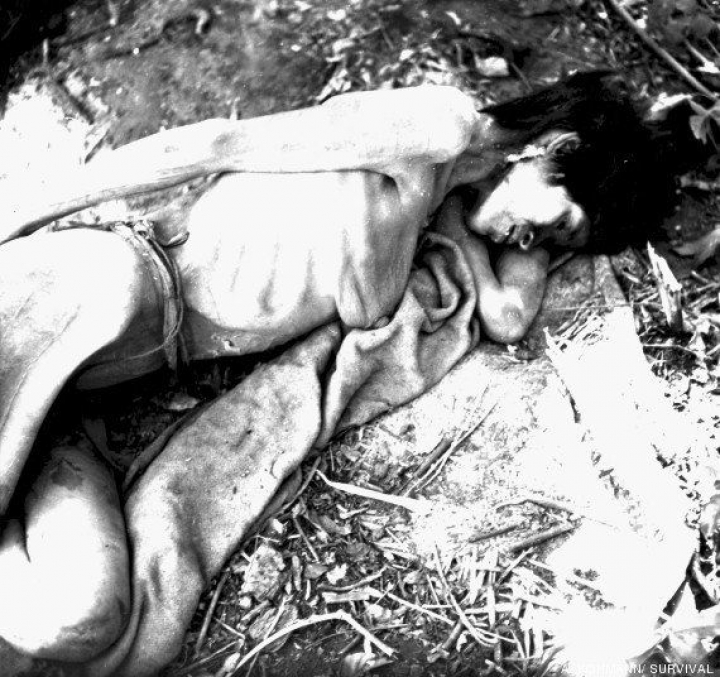 Una mujer aché, poco después de que fuera capturada y sacada de la selva en 1972