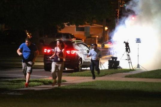 Un equipo de televisión de Al-Yazira que estaba cubriendo las protestas en Ferguson tuvo que huir del lugar por el lanzamiento de gas lacrimógeno.
