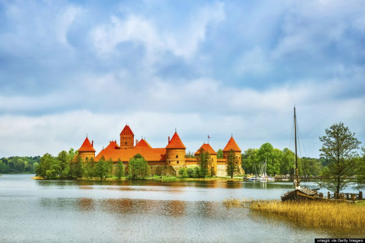 Este castillo de estampa pintoresca está en un diminuta isla en Lituania.