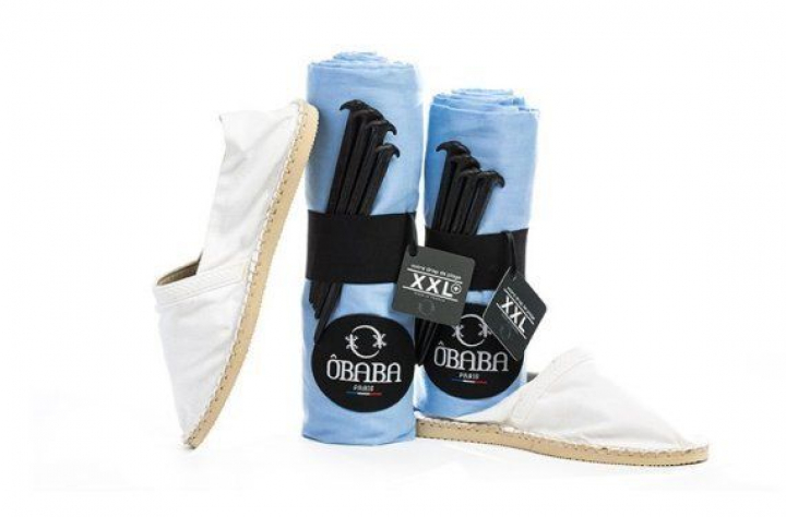 De ahí que en 2012 el español Mario Menéndez y el francés Phillipe Duprez decidieran crear una toalla de playa que, además de ser extragrande y de algodón, tuviera clavos para poder fijarla a la arena y que no se moviera. "Yo soy de Gijón", nos cuenta Mario por teléfono, "y toda mi vida he detestado las toallas. Lo peor es que se quedan mojadas cuatro horas". Además, las toallas pesan, la arena se queda incrustada, ocupan mucho en la mochila (si es que caben), se mueven en la playa... Así nació Ôbaba, que intenta dar solución a todos esos problemas: se seca rápido, no pesa, es lo suficientemente fuerte para mantenerse quieta (gracias también a esos clavos) pero ligera como para llevarla a todos lados. Desplegado, su modelo más pequeño es tan grande como una cama de matrimonio. El grande es mayor aún: "Te miran de reojo", dice Mario.