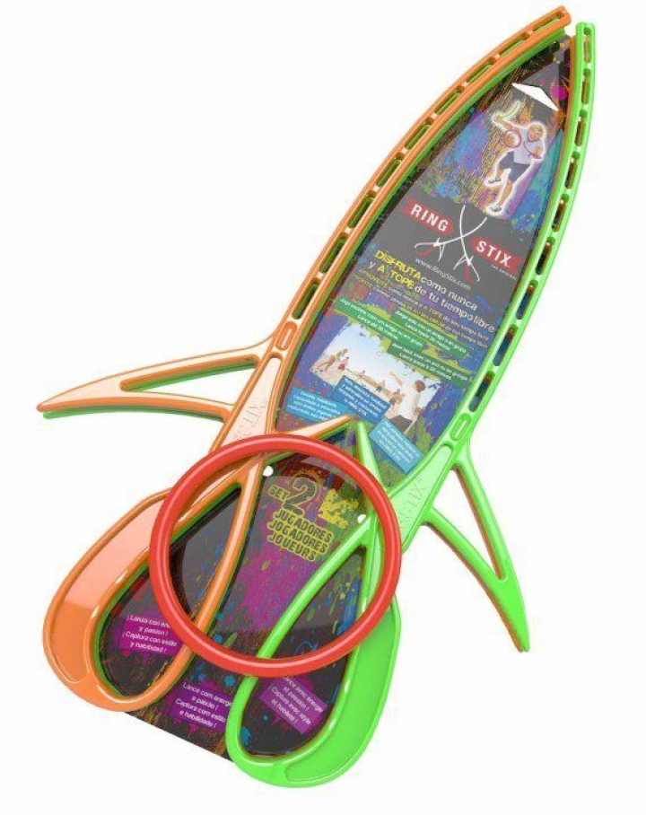 Las llamadas Ring Stix son dos espadas de dos colores distintos con un aro que se lanza entre los dos jugadores. No parece muy difícil, pero tampoco es fácil. "Hasta que no llevas un cuarto de hora ensayando no triunfas", explican sus distribuidores. En Estados Unidos existen desde 2011, pero este año las ha traído a España la marca Fábrica de Juguetes. Así, el producto no se importa, sino que se fabrica directamente en Ibi (Alicante), lo que ayuda no solo a que se aumente la producción de juguetes en España sino a que la distribución sea más fácil y más barata.