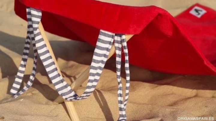 "Tiene dos posiciones y tres orientaciones", nos cuenta Ignacio Vidal, distribuidor de Origama en España, que ha tenido que hacer un vídeo con instrucciones para que se entienda fácilmente cómo clavarla. Al recogerla, también resulta fácil de llevar, ya que las estacas se guardan dentro de la toalla, que se enrolla y se cuelga al hombro como una esterilla. En Portugal los consumidores la han declarado Producto del Año 2014, y en España ha aterrizado este verano.