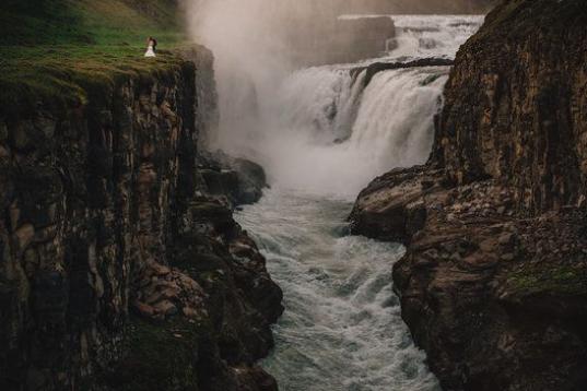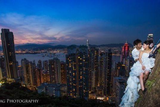 Irte a la playa y hacerte las fotos de recuerdo de tu boda en medio de la arena o adentrándote en el mar ya no es original. Ahora lo que se lleva es que los novios se pongan en peligro y llenen su álbum de boda con imágenes en lugares exóticos.