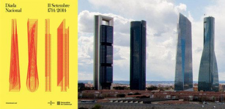 Ilustrar el Día de Cataluña con un nuevo símbolo de Madrid no encaja ni remotamente con las reivindicaciones y el trasfondo de la fiesta del 11 de septiembre. El cartel oficial de la Diada recuerda sin embargo a las cuatro torres de Madrid, como señala ABC.