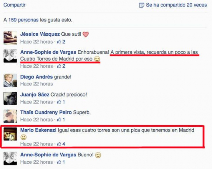 A un comentario que alguien hacía al post de Eskenazi en Facebook y que señalaba el parecido entre el cartel y las torres madrileñas, el diseñador contestaba con humor: