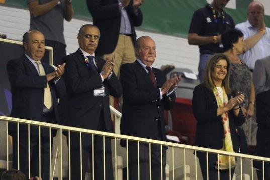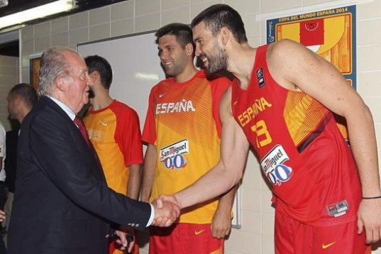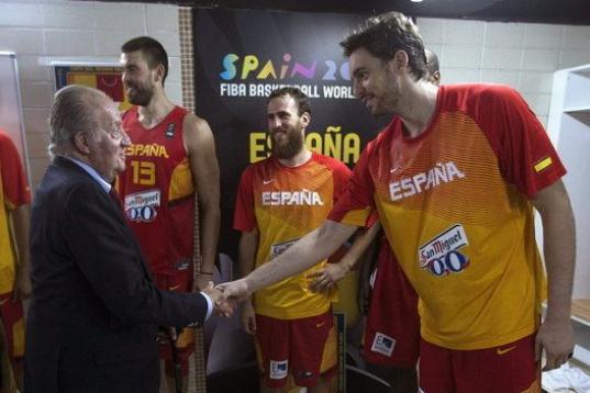 El rey Juan Carlos presenció el partido pocos días después de que Felipe VI acudiera al último encuentro amistoso de preparación del Mundial que el combinado español disputó el pasado lunes en el Palacio de los Deportes de Madrid frente al de Argentina, al que venció por 86-53.