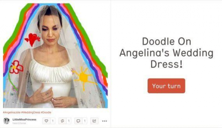 A partir de un pequeño programa llamado UrTurn (Tu Turno) que permite dibujar a medida, algunos también han dibujado su versión del vestido soñado de Angelina. ¿Con margaritas? Hecho. ¿Con cuernos a lo Maléfica? En un minuto.