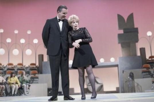 Ed Sullivan junto Joan Rivers en The Ed Sullivan Show, New York, NuevaYork, 11 de septiembre de 966. (CBS Photo Archive/Getty Images)