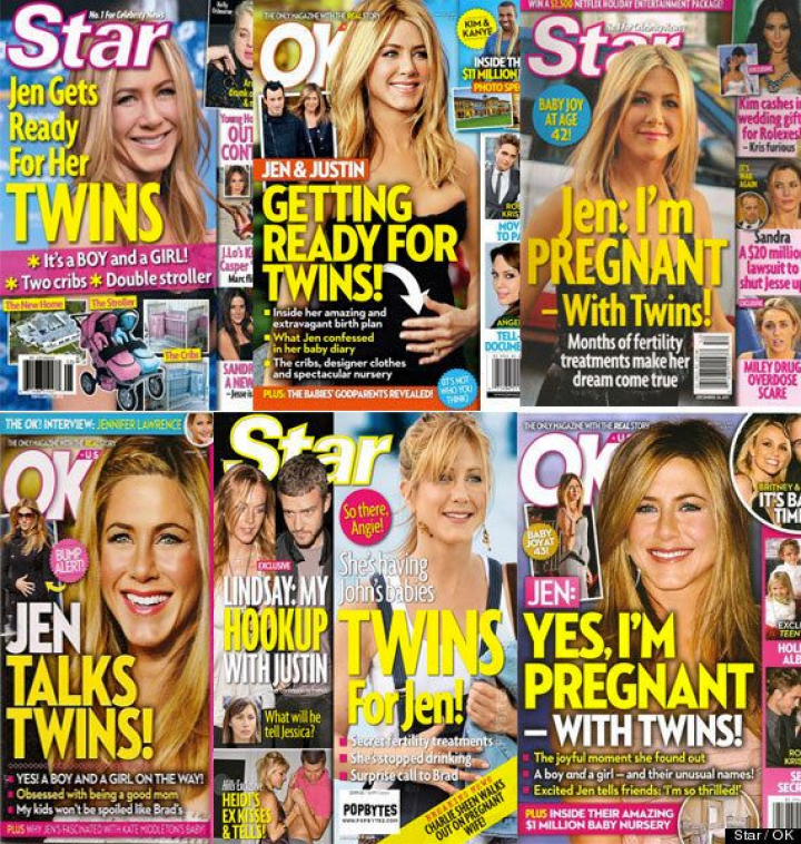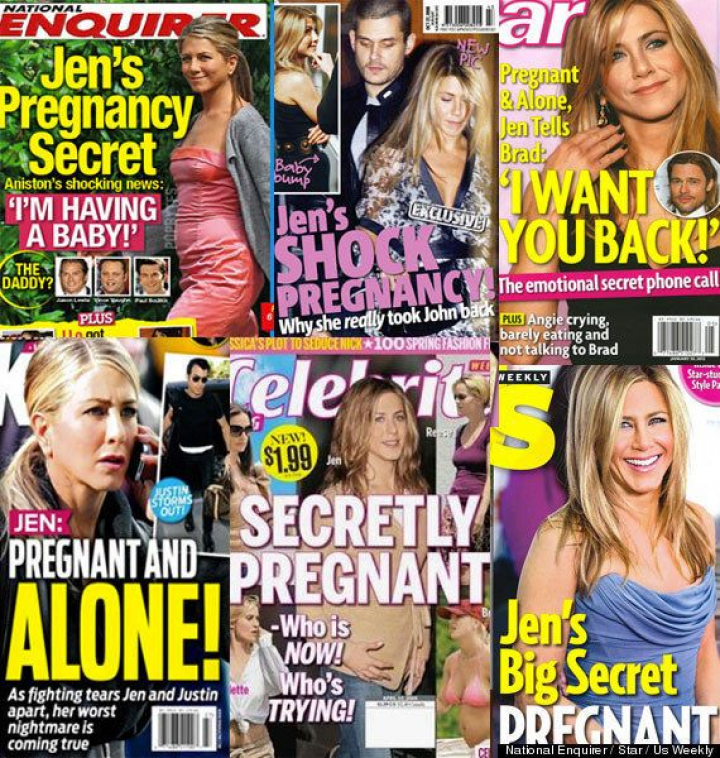Tanto se han propagado los cotilleos sobre los futuribles hijos de Aniston que HuffPost Celebrity realizó un divertido análisis hace unos meses sobre los cientos de veces que podría haber estado (si fuera cierto todo lo que dicen las revistas) embarazada la actriz: de gemelos, soltera, de Brad Pitt, de Justin Theroux...