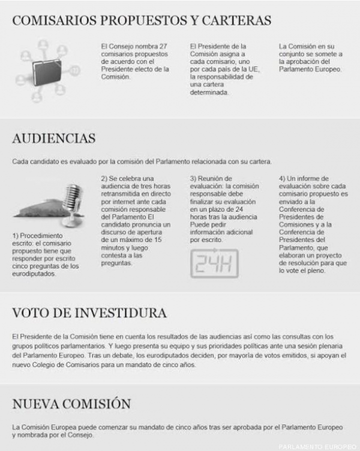 En esta infografía del Parlamento Europeo puedes ver cómo funcionan las audiciones que deben pasar los comisarios propuestos ante la Cámara.