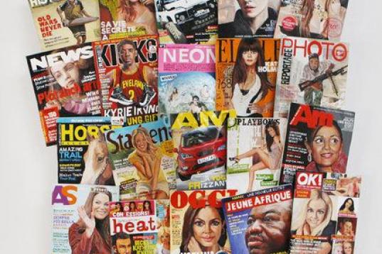 Mira la foto de aquí abajo un poco más de cerca. ¿No hay nada que te llame la atención? Hay algo más aparte de un montón de portadas de revistas en un kiosko.