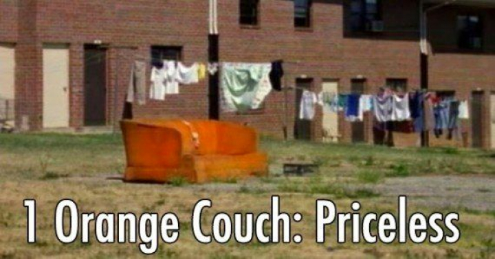 El famoso sofá naranja fue recogido de un vertedero, pero luego tuvieron que gastarse 5.000 dólares para conseguir una réplica, ya que alguien volvió a tirarlo por error.