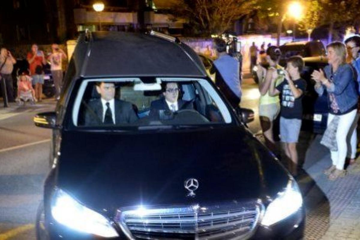 Los restos mortales del que fuera presidente del Banco Santander llegaron este miércoles pasadas las 22.00 horas al palacio 'El Promontorio', la antigua casa de la familia en la capital cántabra, donde ha sido recibido con aplausos por un centenar de personas.