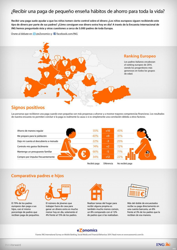 El sondeo ha sido realizado por el Grupo ING con la participación de más de 12.000 europeos y muestra que haber recibido paga de pequeños es la razón principal de los padres para darla a su vez a sus hijos.
