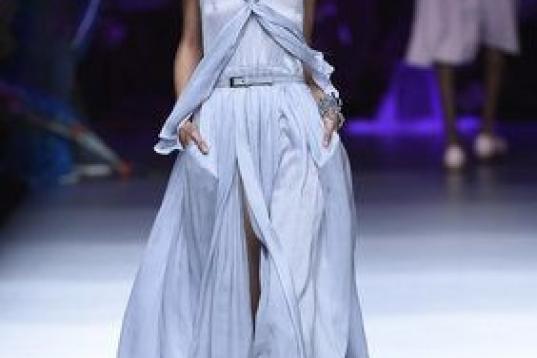 Tras ellos, el viernes, la primera en desfilar fue Devota y Lomba, veterana firma que lleva 25 temporadas presente en esta cita. "Cada colección tiene su propio sello, pero todas siguen el hilo conductor de la firma", relata Modesto Lomba, su creador, un día antes del desfile. El proceso de creación, para el que se necesita tiempo e investigación, lleva meses. "Ya hemos comprado los tejidos para la próxima colección, otoño/invierno 2015-2016", afirma sentado en el camerino número 12 del backstage entre las prendas de verano que todavía no ha enseñado al público, basadas en el modernismo y con apliques de silicona realizados en moldes de cerámica.
