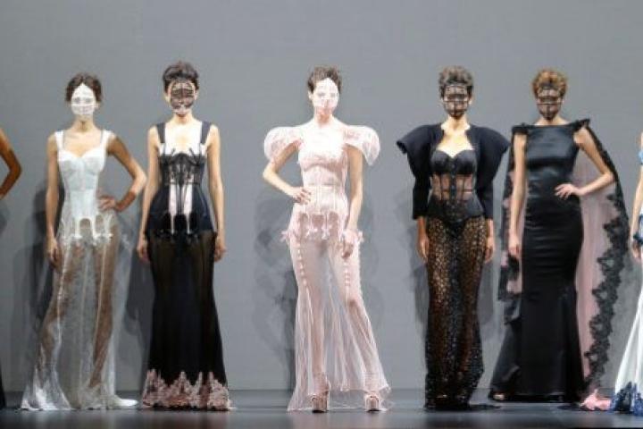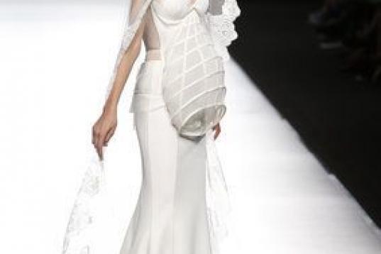 Pero no podemos dejar pasar la novia que ha cerrado su desfile: los corsés que ha dejado ver en sus prendas y en las máscaras que cubrían las caras de las modelos se han convertido ahora en una barriga de embarazada. Hansen ha estado una temp...