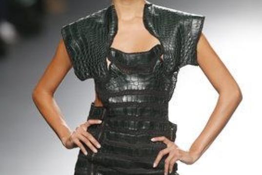 El creador vasco presentó su primera colección en Nueva York hace apenas unos días, y ahora muestra la femenina en Madrid. Nada de tela: pura piel con unos patrones muy marcados. Si te atreves con el cocodrilo o la piel de pitón, es para ti.