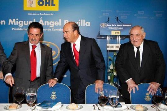 Con el presidente del Banco Santander, Emilio Botín, en la tribuna Foro de la Nueva Economía presidida por Miguel Ángel Revilla en 2008.