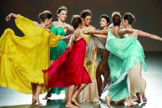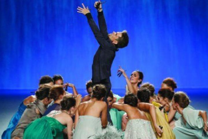 El desfile de Juan Duyos en la 60ª MBFWMadrid primavera/verano 2015 es de los que se recordarán de esta edición. El diseñador cumple 15 años de creaciones en solitario y lo ha querido celebrar con una puesta en escena como no se han visto antes sobre la pasarela de Madrid. Duyos ha sacado a escena a casi una veintena de bailarinas del Ballet Nacional de España y a su director, Antonio Najarro.