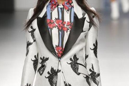 Femineidad vista de otra manera: mujeres fuertes pero dulces a la vez. Vidal presenta estampados de fresas basados en el Strawberry Fields de los Beatles y en concreto en una chaqueta de McCartney. Trajes cortos y muchas, muchas fresas, fresitas...