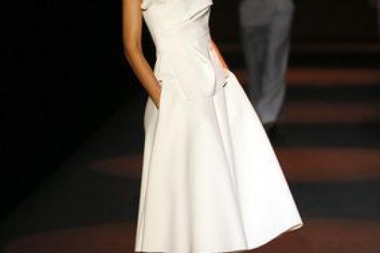 Sus cortes y estructuras muy elaboradas siempre mandan en sus diseños. Esta vez se ha despegado un poco del negro, su color fetiche, para tocar el blanco o el azul. No era para menos, teniendo en cuenta que ha basado su colección en el movimie...