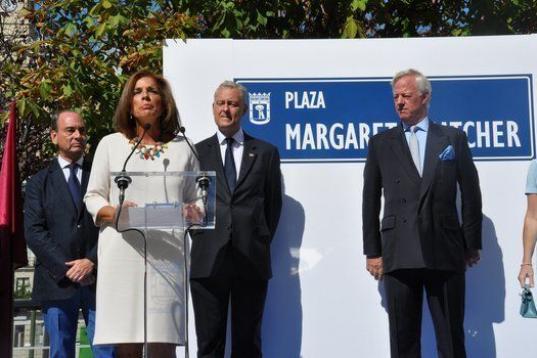 Durante el acto, Ana Botella ha destacado de la ex primera ministra británica su "compromiso con la libertad", que la sitúa, ha dicho, "entre las grandes personalidades del siglo XX" y que explica, ha añadido, que hoy Madrid quiera "reconocer a Margaret Thatcher fijando su nombre en esta gran ciudad, testigo y escenario de la historia".