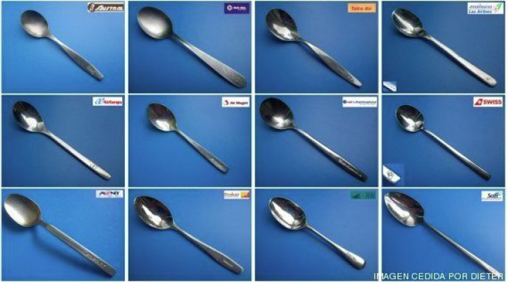 En esta secuencia de imágenes que el usuario Dieter ha colgado en su cuenta de Flickr muestra orgulloso la selección de cientos de cubiertos procedentes de todo tipo de compañías aéreas, desde AirEuropa a Cathay Pacific. Otros prefieren centrarse en las bolsas de papel para posibles mareos.