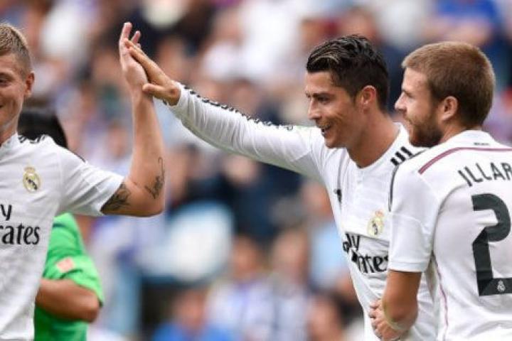Además del doblete de 'Chicharito' Hernández, el portugués Cristiano Ronaldo logró un triplete, el galés Gareth Bale otros dos goles y completó la cuenta, con un espectacular golazo de otro impresionante disparo desde fuera del área, el colombiano James Rodríguez.