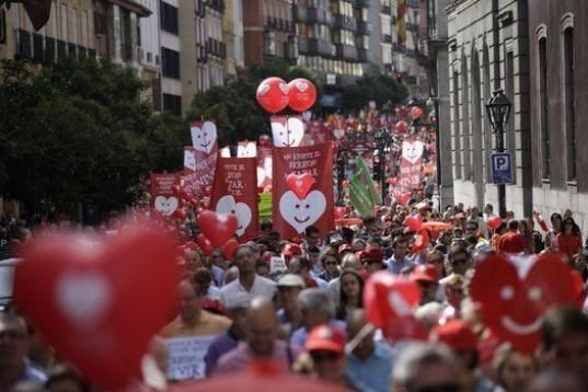 Durante el trayecto se han oído continuos gritos contra el Ejecutivo, como: 'Rajoy nos toma el pelo mejor que Zapatero', 'Vaya, vaya, vaya, Soraya nos engaña', 'Rajoy, embustero, queremos aborto cero', 'Rajoy cumple hoy' o 'PP toma nota, aquí nadie te vota'.