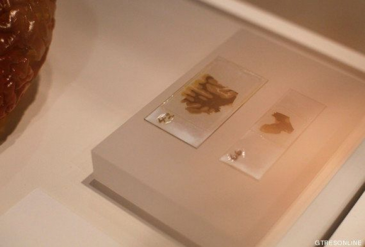 Secciones del cerebro de Albert Einstein en una exposición en Londres en 2012.